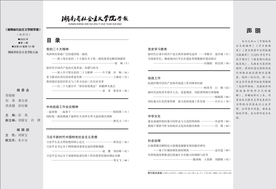 湖南社院学报2023年第1期封面及目录