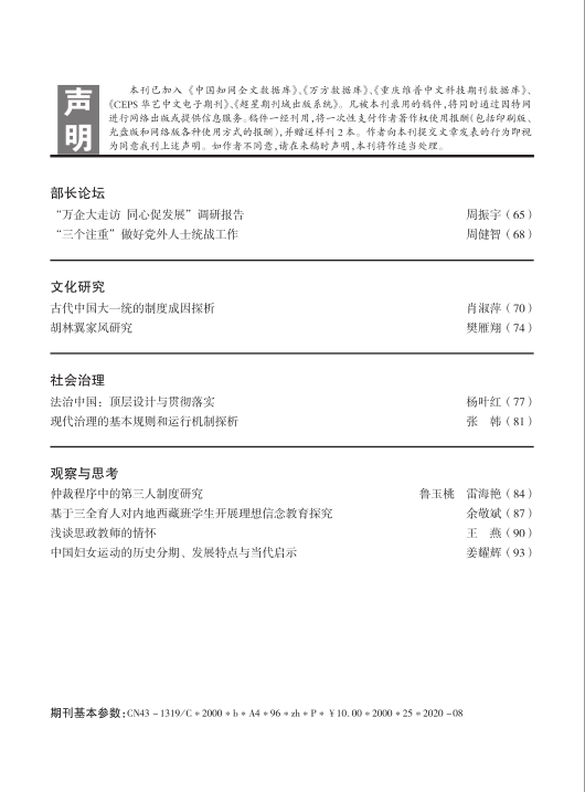 湖南社院学报2020年第4期封面及目录
